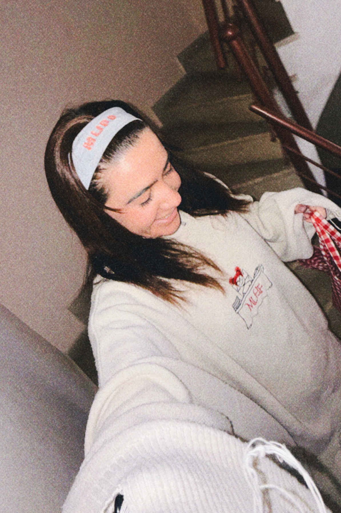 Τσάντα Muff καρό κόκκινη λευκή μεγάλη